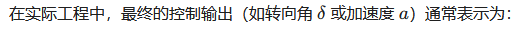 PID 部分(反馈):主要消除由于模型不准、侧风或路面干扰产生的瞬态误差。