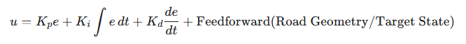 - P/I/D :根据速度误差 Verror = Vtarget − Vcurrent调节加速度指令(油门/刹车)。