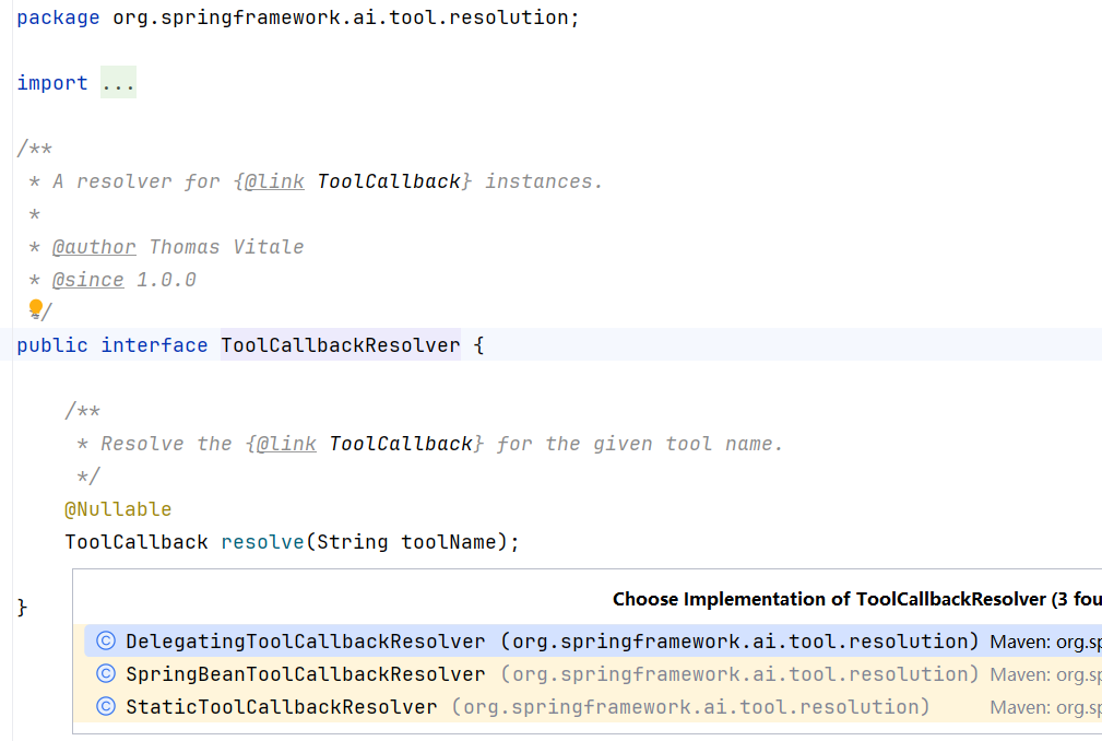 ToolCallbackResolver就是工具解析的接口,包括两个实现类: