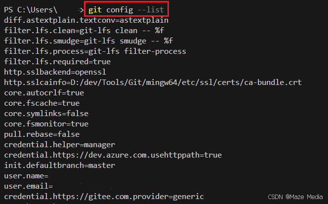 指定了Git使用的凭据助手。manager是Windows提供的凭据管理器,用于存储和检索Git凭据