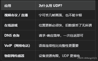 | 实时音视频、游戏、监控 | ✅ UDP |