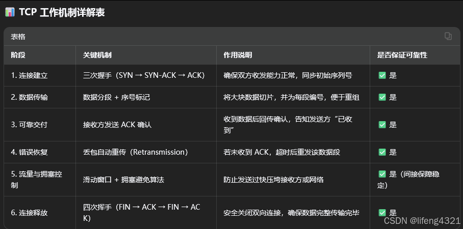 TCP = 打电话:先拨通 → 对话 → 挂断,全程可靠