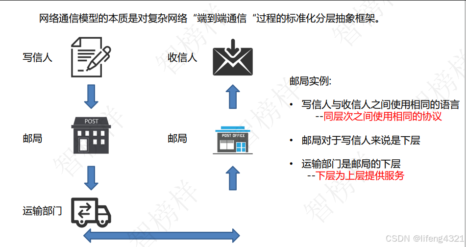 | 4 | 传输层(Transport) | 端到端通信,可靠传输(TCP)或快速传输(UDP) | 邮局保证信不丢 |