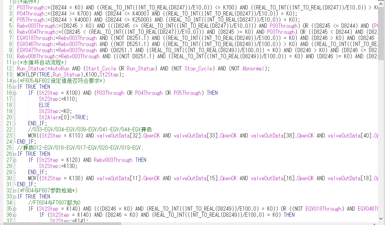 三菱R系列PLC程序全部采用ST语言编写,这可不是随便选的。ST语言,也就是结构化文本语言,它是PLC后续的主流语言,代表着日后编程的趋势,更是咱们编程水平的一种体现。为啥这么说呢?它就像是编程语言里的"白话文",语法接近高级语言,清晰易懂,能让程序思路清晰,简洁明了。