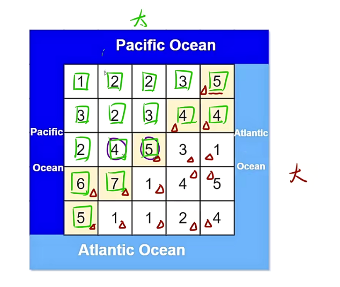 heights[x][y] >= heights[i][j] && !pacific[x][y]) {