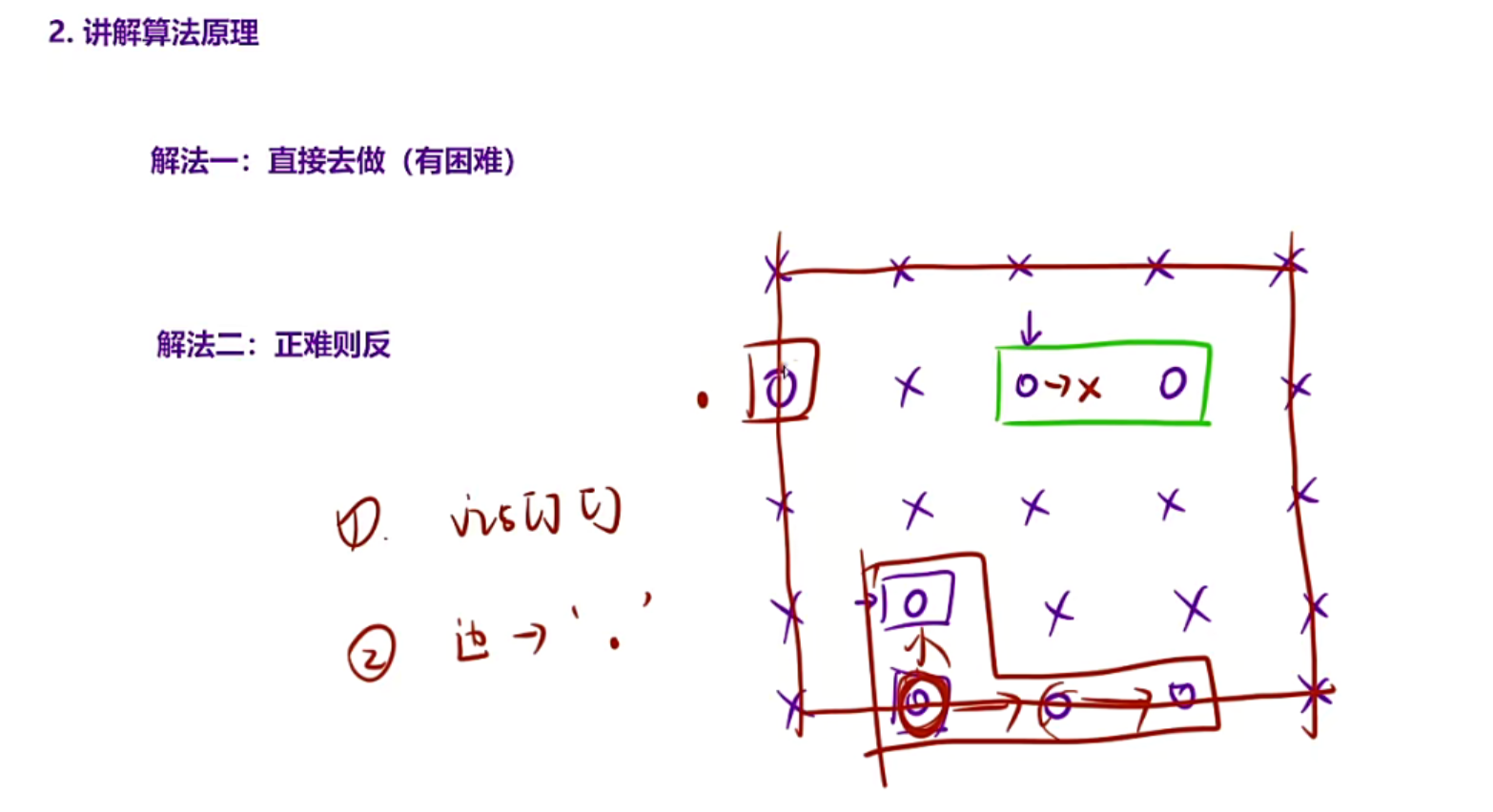 第二种修改成特殊字符,然后在对非边界进行深度优先修改成X,最后把特殊字符改为O即可