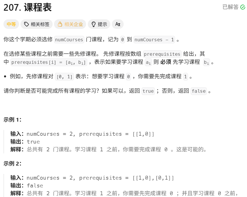bool canFinish(int numCourses, vector<vector<int>>& prerequisites) {