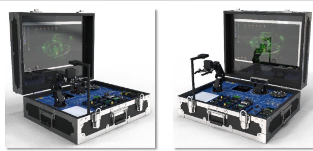 人工智能综合实验箱 主要面向人工智能、大数据相关专业,集成了计算机视觉系统、语音处理系统、机械手臂、以及手势传感器、温湿度传感器、大气压传感器等多种嵌入式应用模块,通过搭建边缘计算终端,为人工智能专业相关的应用开发提供统一的通讯协议和接口。