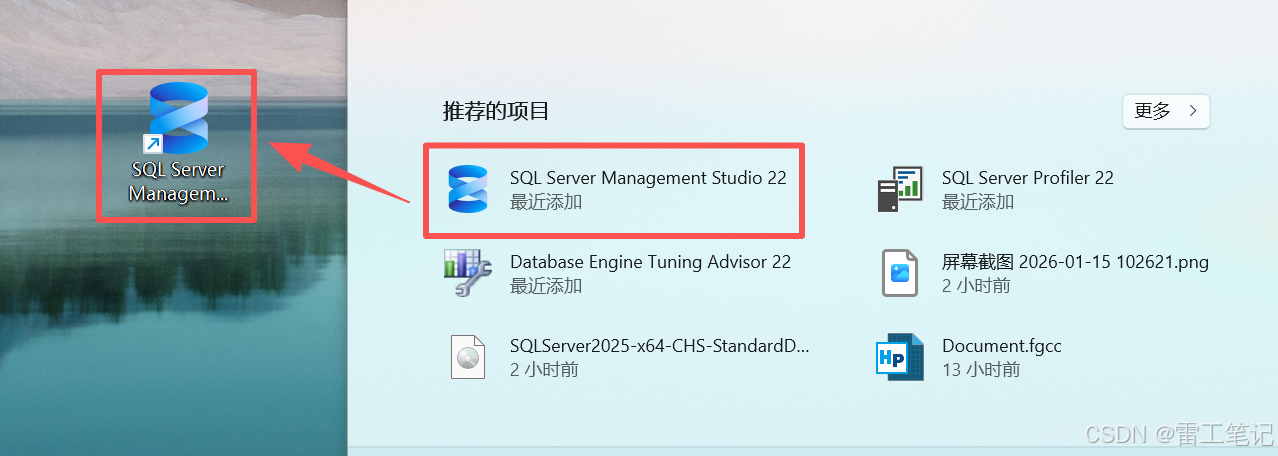 在开始菜单中找到【SQL Server Management Studio 22】软件,拖拽到桌面上即可生成桌面快捷方式。