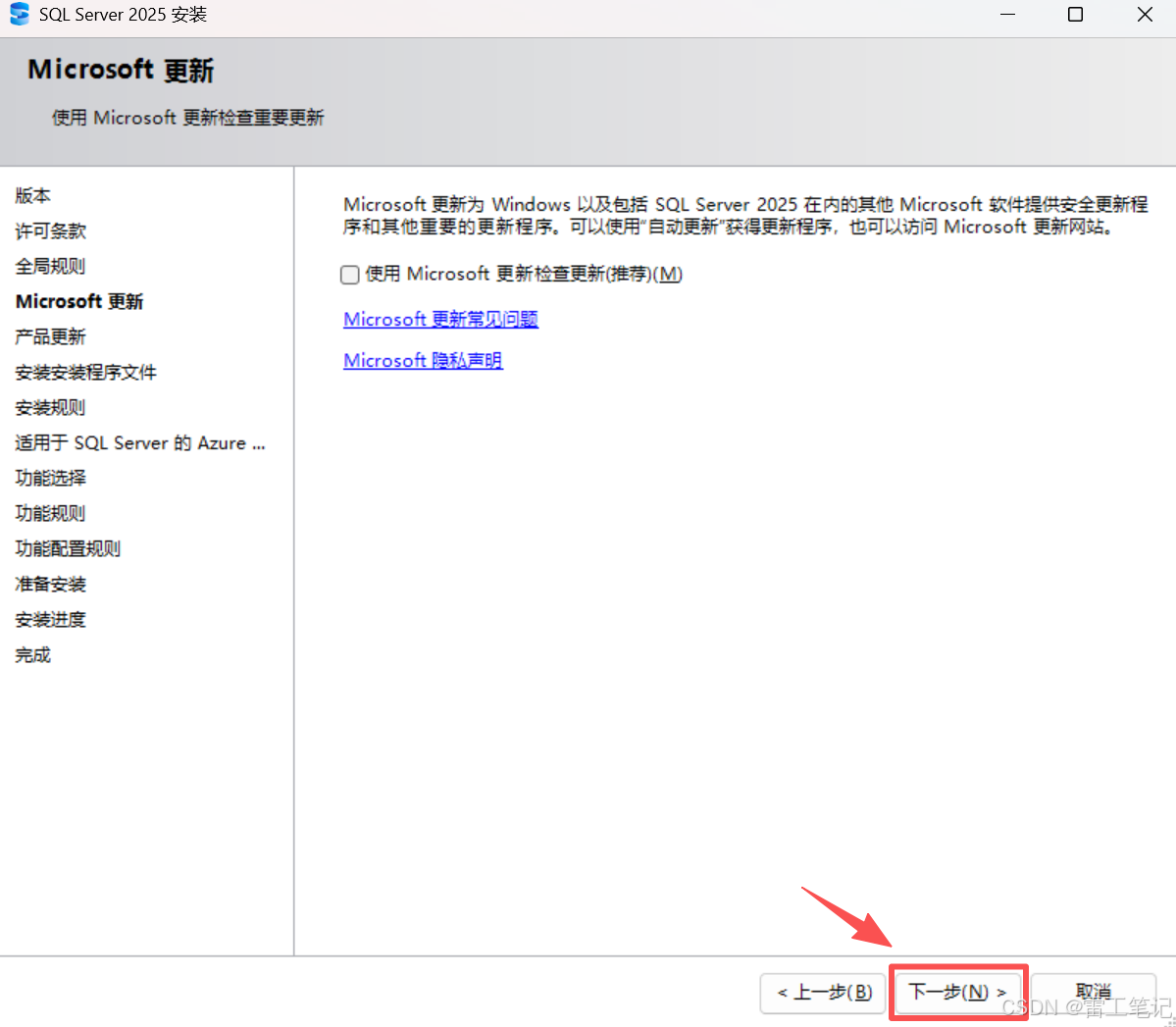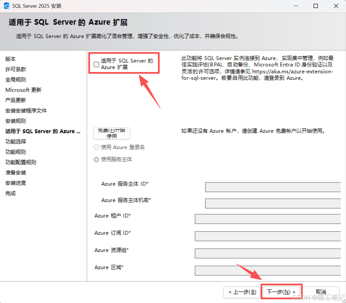 不知道啥意思,取消【适用SQLServer的Azure扩展】勾选,然后点击【下一步】按钮。