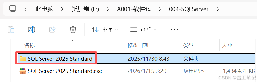 在解压出来的文件夹中选中【SQLServer2025-x64-CHS-StandardDev.iso】,右键→选择【装载】。