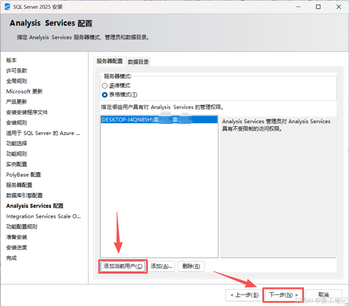 点击【添加当前用户】,然后点击【下一步】按钮。