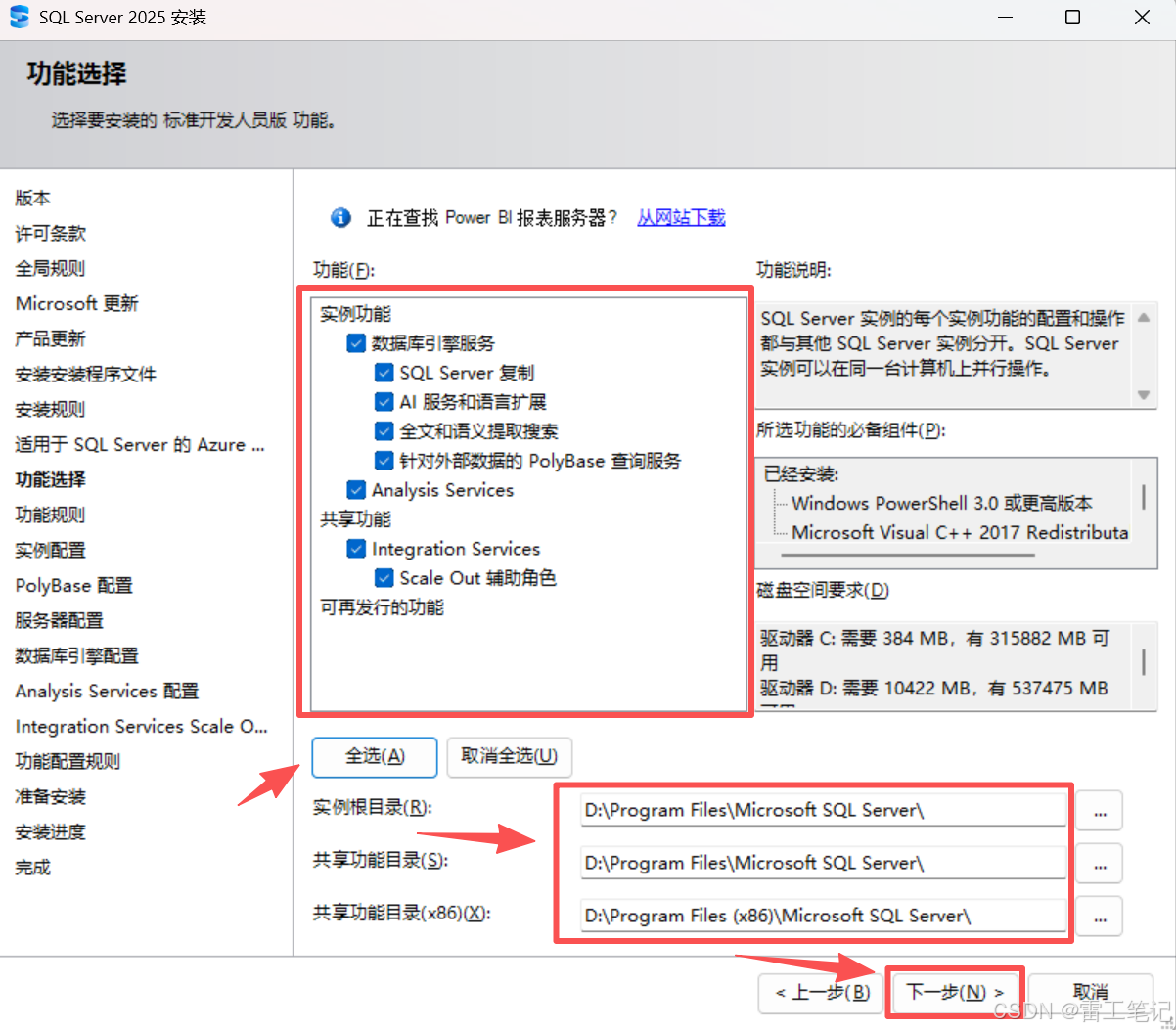 这里勾选了全选,安装目录均改为了D盘,然后点击【下一步】按钮。