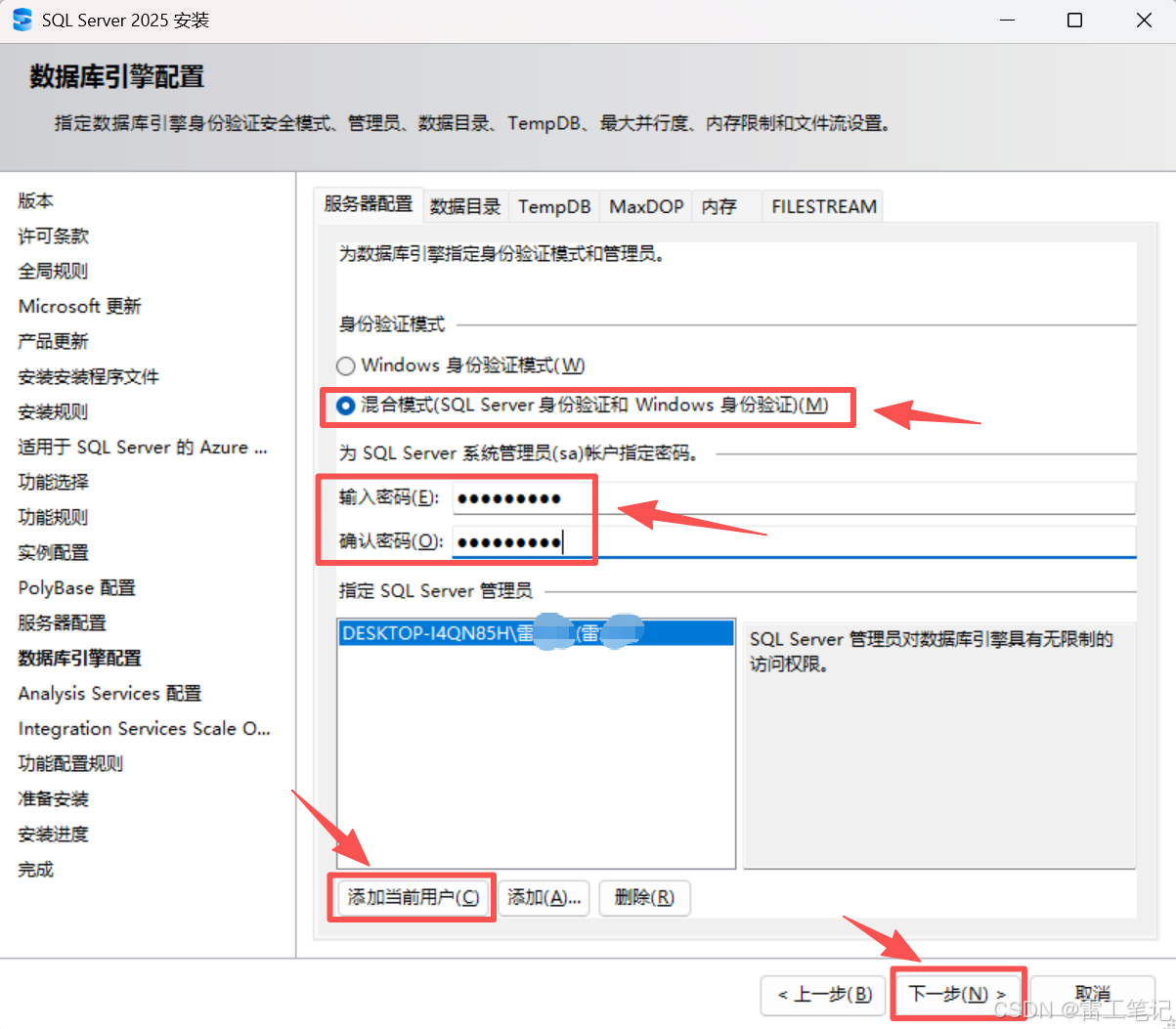 选择【混合模式】,输入自己容易记的密码:admin@123,