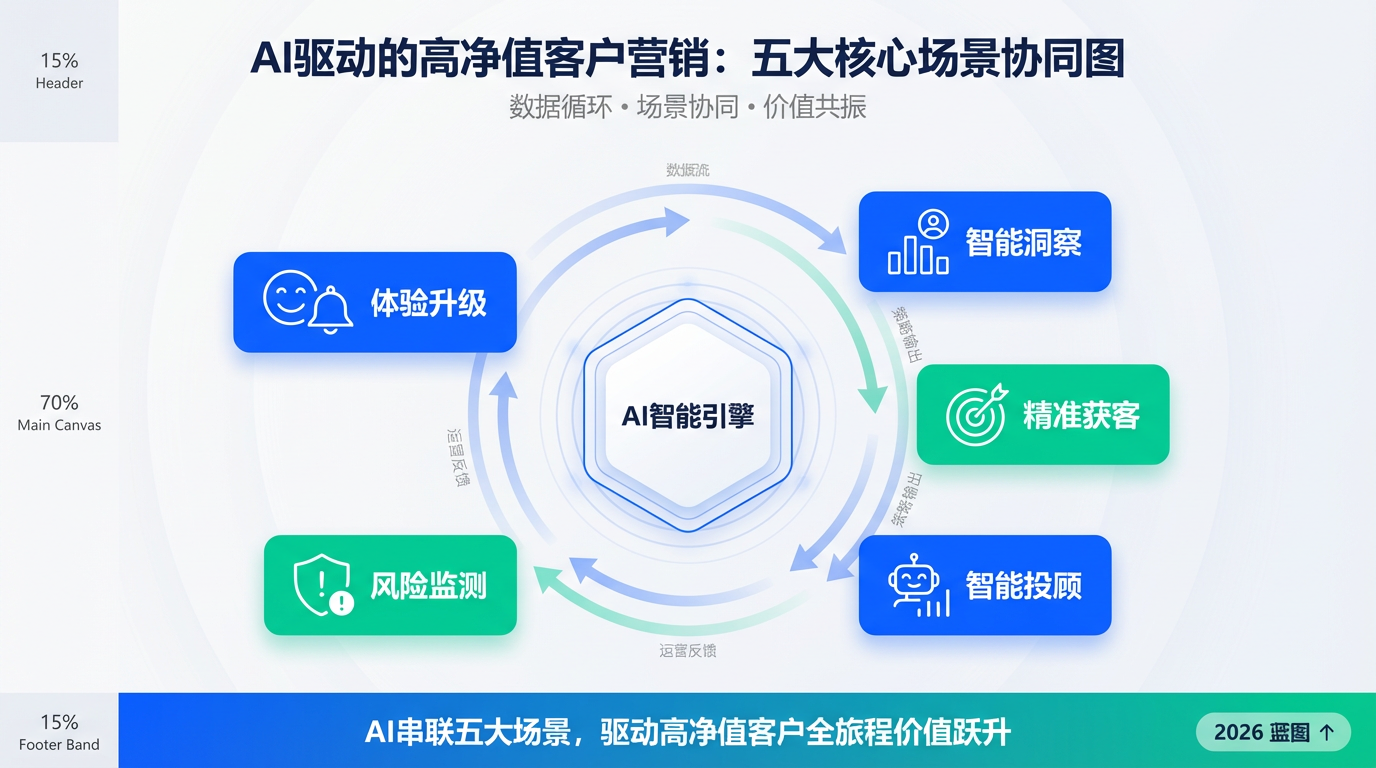 在2026年的市场格局中,将生成式AI融入核心业务流程,已成为顶级券商的共识。结合前沿技术趋势与券商业务的独特性,我们识别出五大决定未来竞争力的核心应用场景。这五个场景环环相扣,共同构成了一个完整的AI驱动型高净值客户营销与服务体系。