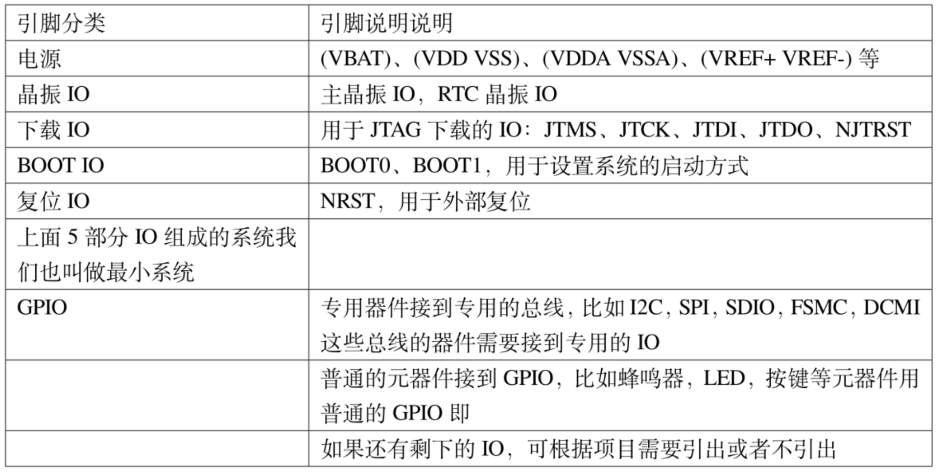 引脚包含GPIO,引脚还包括电源引脚,BOOT引脚,复位引脚等