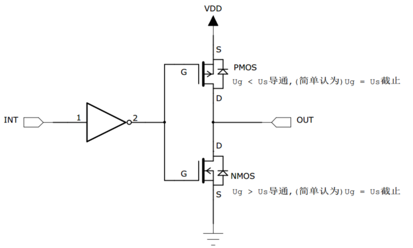 上面的 P-MOS 导通 :输出被主动拉向 VDD → 可理解为强上拉