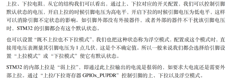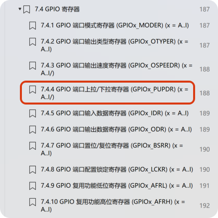 上下拉电阻的控制,通过上拉/下拉寄存器控制,如下所示