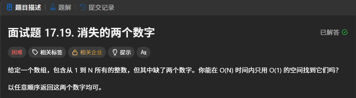 [38. 消失的两个数字](#38. 消失的两个数字)