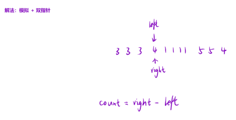while(right<len&&ret[left]==ret[right]) right++;