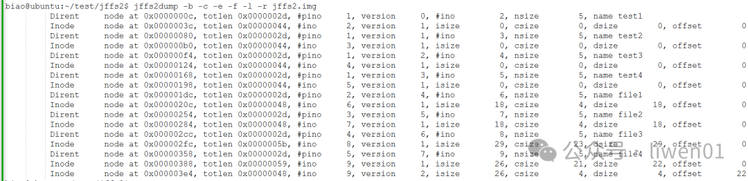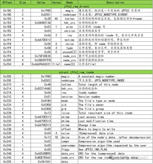 按上面hexdump查看的mtdblock0 RAW数据进行解析,可以发现,解析的数据与jffs2dump中查看的信息是一致的。