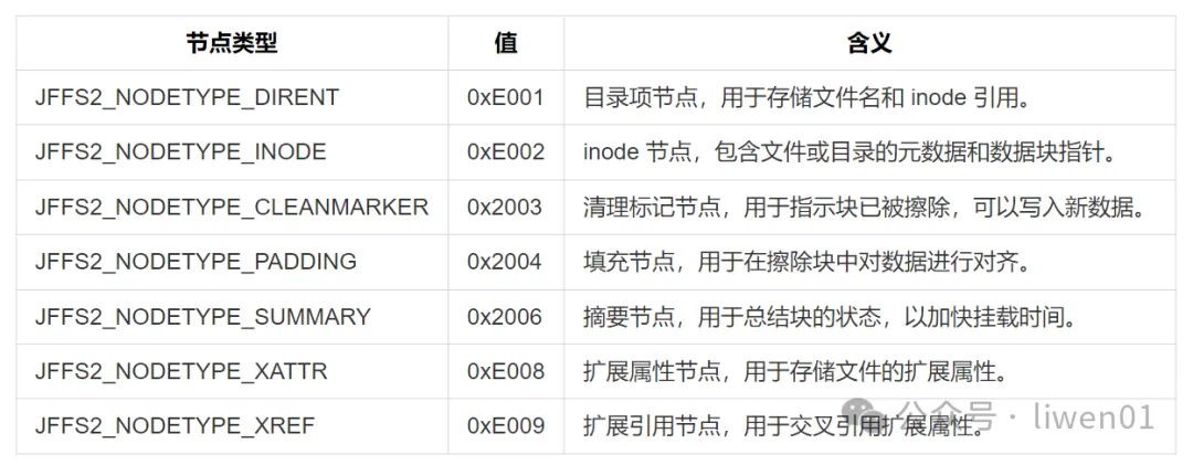 详细的定义可以查看mtd-utils/include/linux/jffs2.h