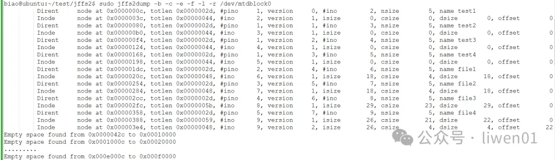 - 分析备份jffs2中的数据,看是否能找到file1的目录节点
