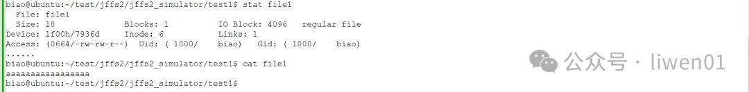 下面分析的这个文件,是制作镜像文件时创建的file1文件,里面存有18个字节的a字符串,文件信息如下: