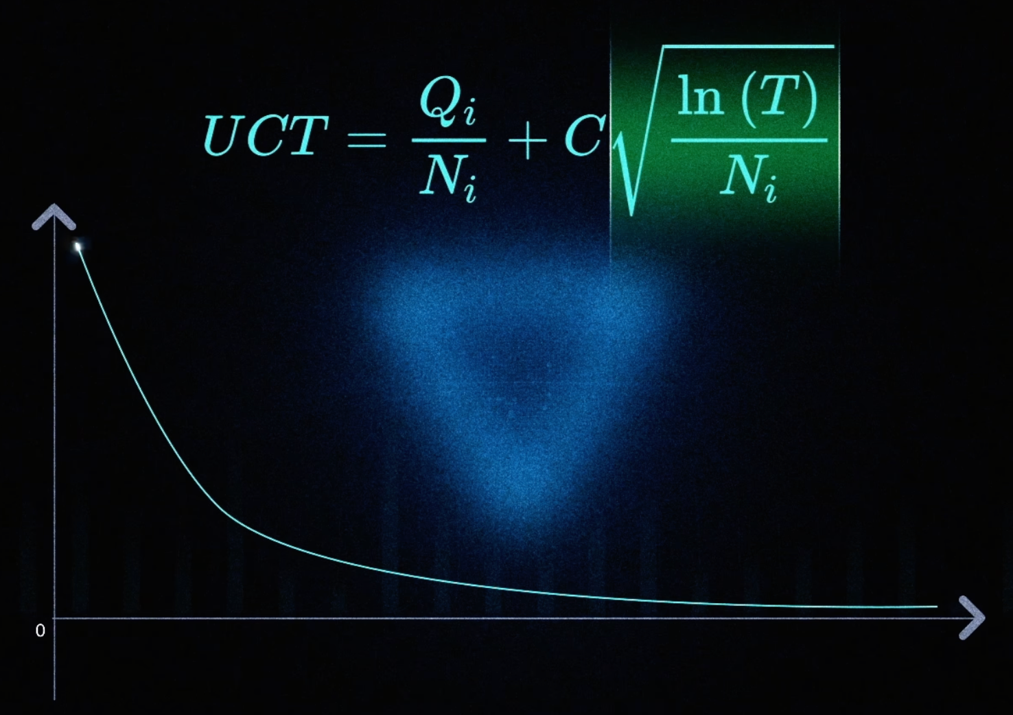 前半部分是胜率,后半部分值随着访问次数的增加,值越来越小