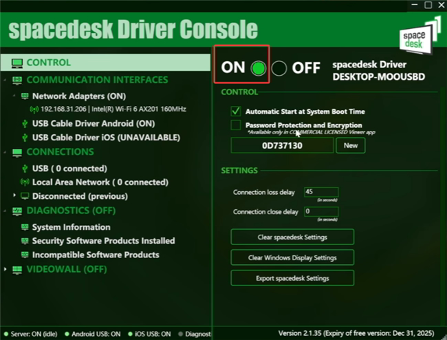 2. 确认两台设备均在同一局域网 下,并在电脑端的Spacedesk软件中根据提示,开启服务;