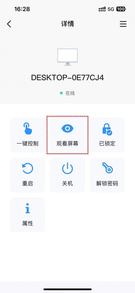 3**.** 单击**"观看屏幕"**,就可以实现电脑投屏手机。(如想控制电脑,就点击"一键控制")