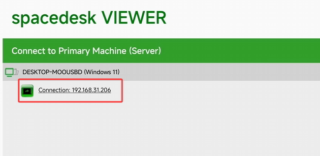3. 在手机上打开Spacedesk,点击列表中电脑IP地址;