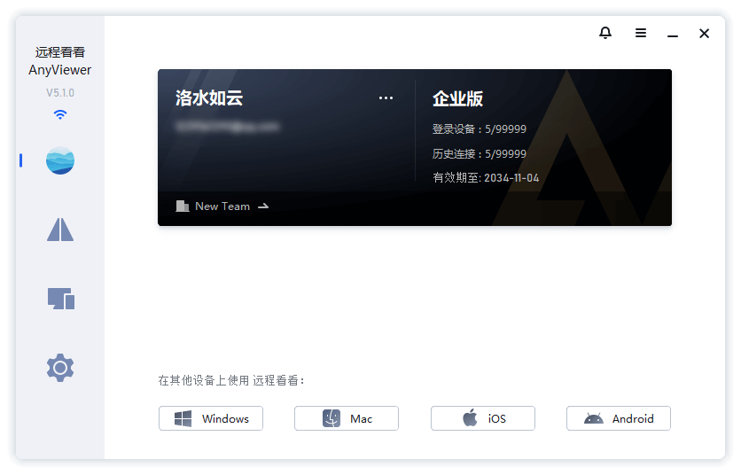 - 在电脑和手机上下载安装远程看看,注册并登录同一账户,软件会自动绑定该两台设备到该账户下。