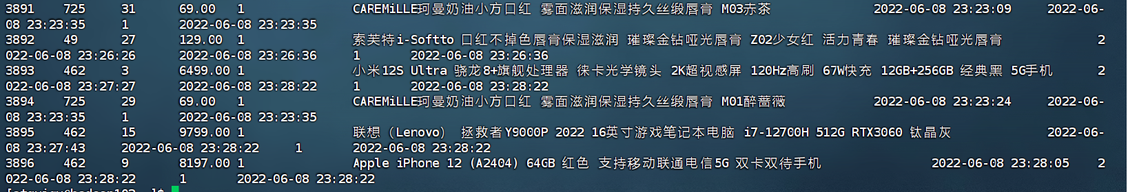 2.查看增量表数据(随便选一个查看)(在hadoop102执行下面命令)