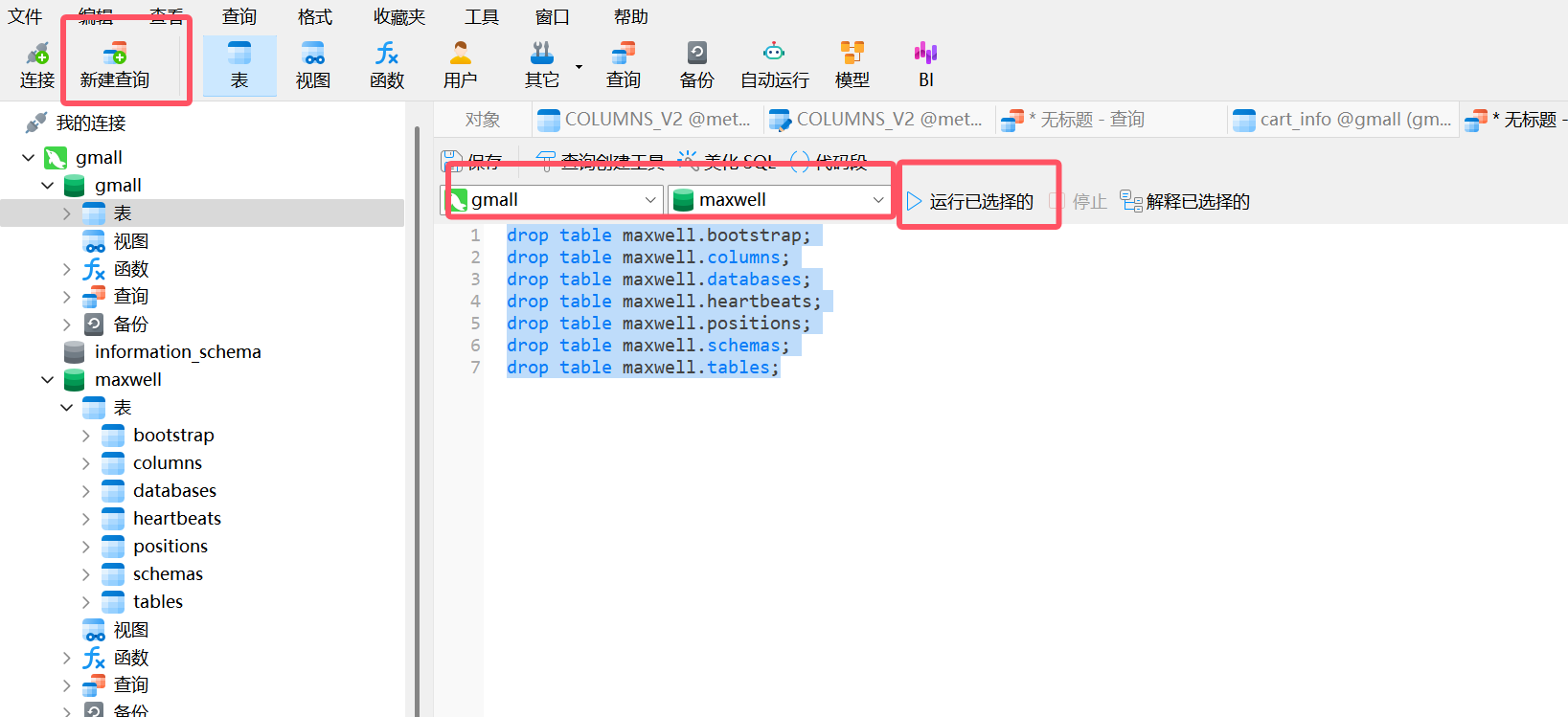 在navicat执行下面的查询语句,注意数据库是maxwell