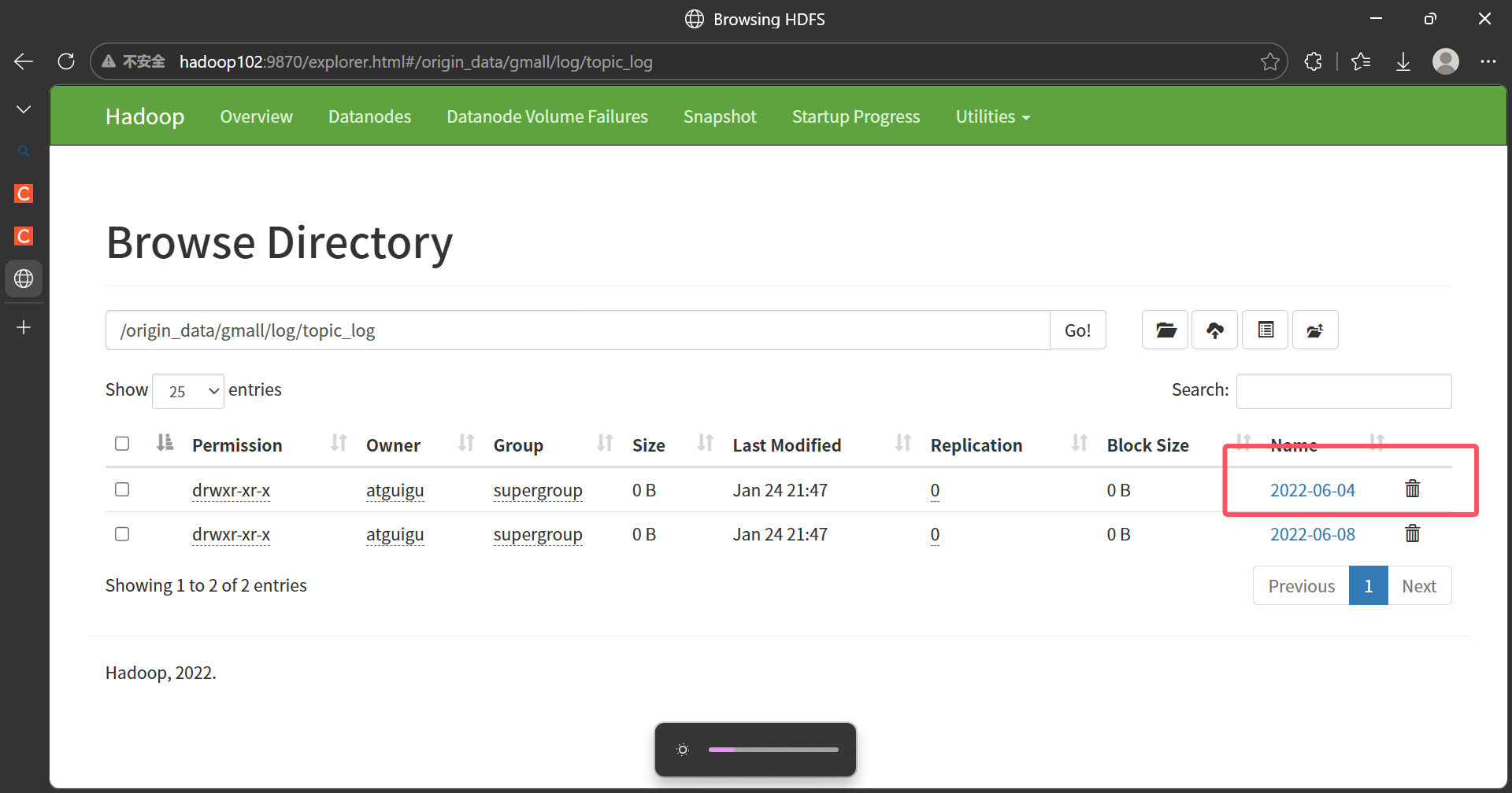 访问http://hadoop102:9870,删除下图框选的文件origin_data