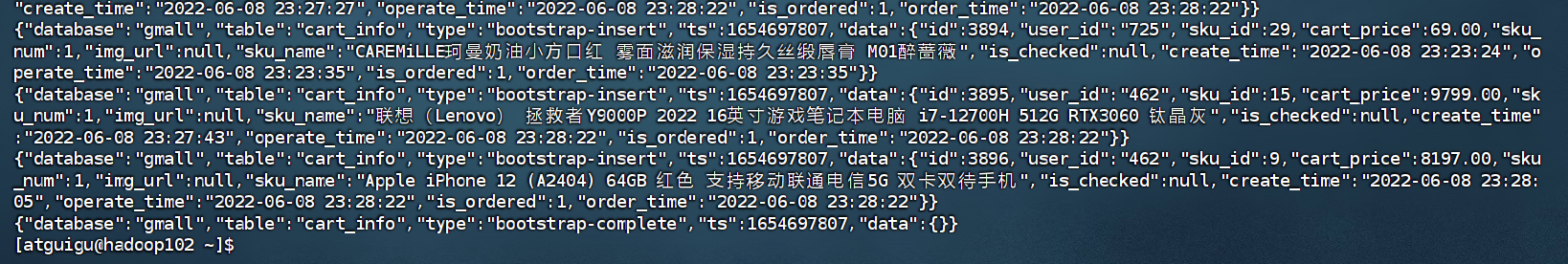 1.查看全量表数据(随便选一个查看)(在hadoop102执行下面命令)