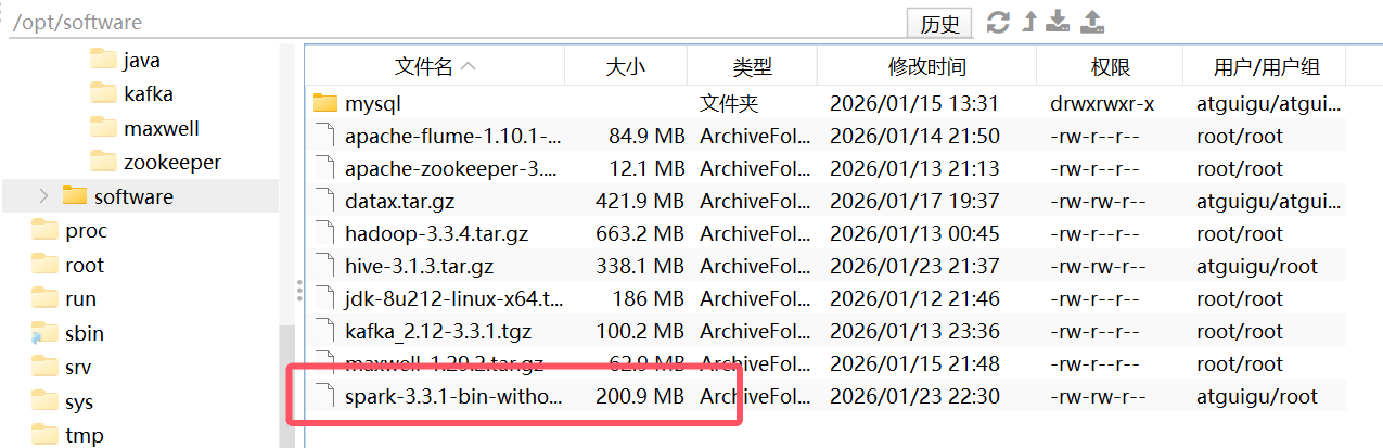 1.上传spark安装包到/opt/software目录下(hadoop102执行下面操作)