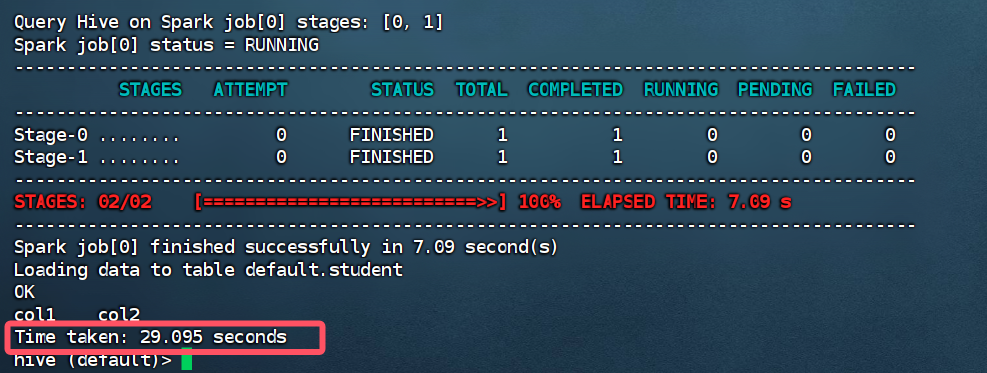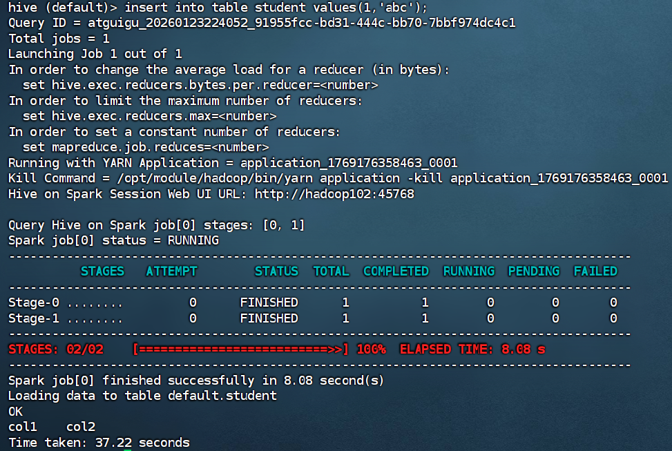 3.插入数据(会很慢,在下面会进行优化)(hadoop102的hive客户端执行下面命令)