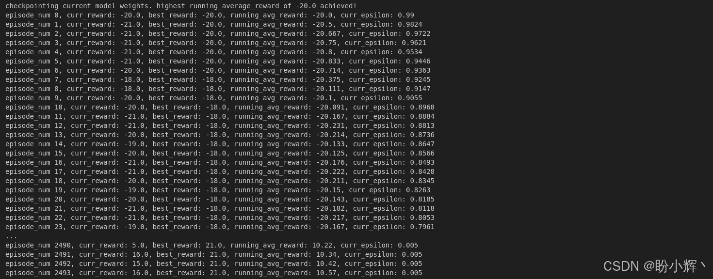 我们已经具备了开始训练 DQN 模型所需的所有要素,接下来开始训练模型。