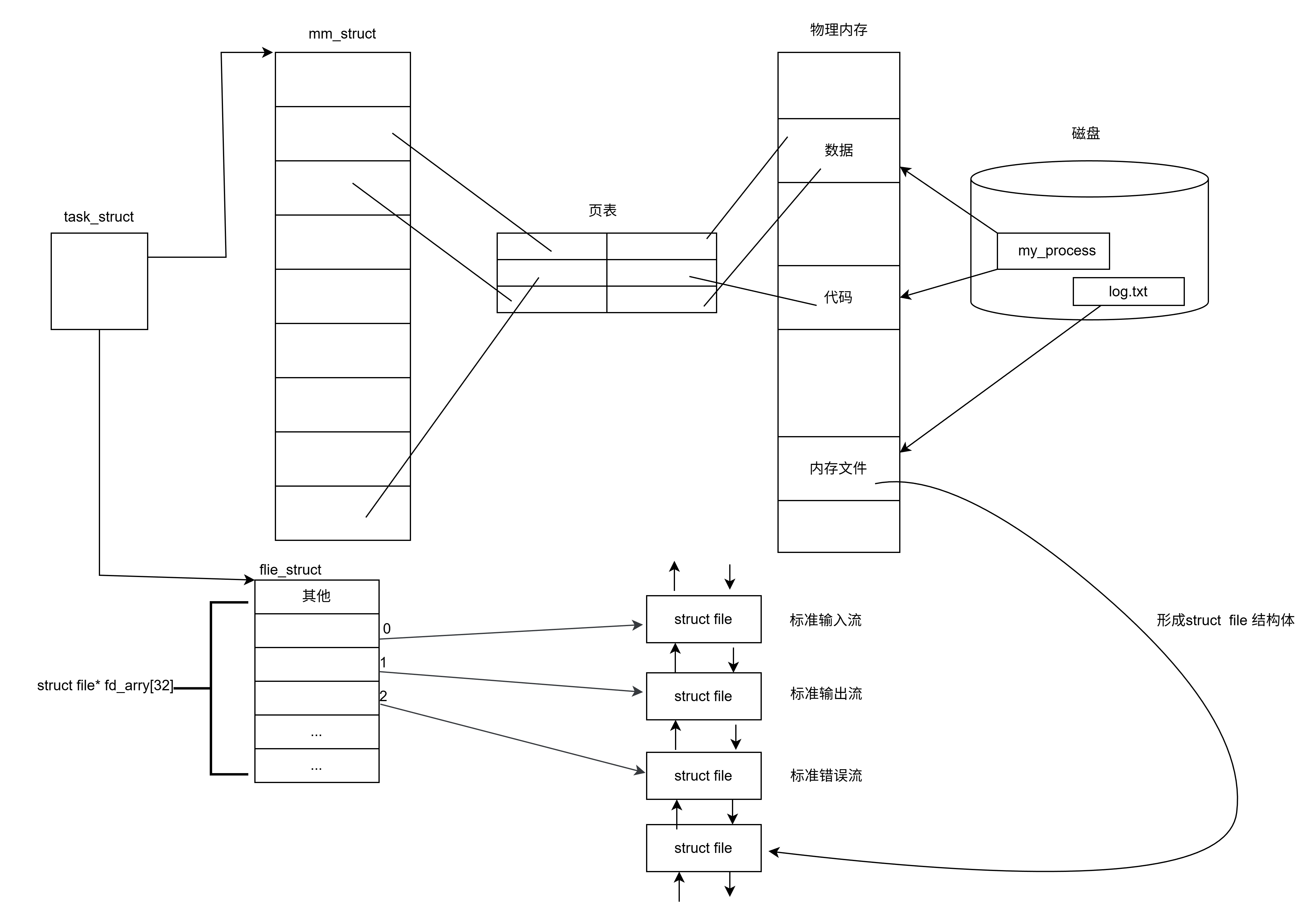log.txt文件加载到内存中,并为其创建对应的struct file结构体(包含文件的读写位置、权限、关联的磁盘inode等核心信息); - 把这个新创建的
