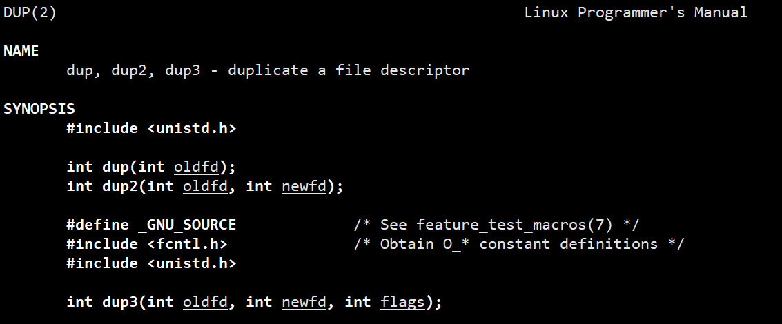 - 若 oldfd 并非有效的文件描述符,dup2 调用失败,且此时文件描述符为 newfd 的文件不会被关闭;