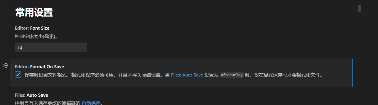 同时勾选最上面的"Format On Save",使保存自动格式化