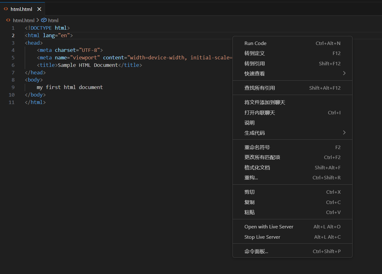 **前言:**本文章全都继续vscode编辑器,只是把内容全都过一遍,不深究语法,现在AI编程能力很强了,很多内容都可以快速编写。开始前为了遍历开发,希望大家先下载如下Live Server插件