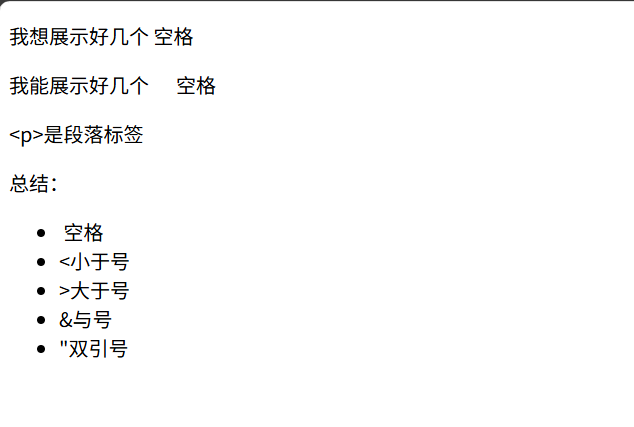 常用于显示不可见字符、保留字符(如"空格",<p>文本)