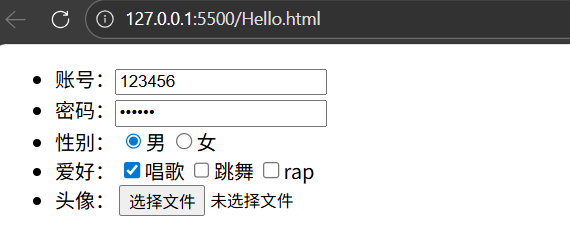 账号:<input type="text" placeholder="请输入账户" name="username" maxlength="8" autocomplete="off">