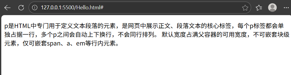 表示一个段落,每行只显示一个段落标签里的内容,文字会随着界面显示自动换行