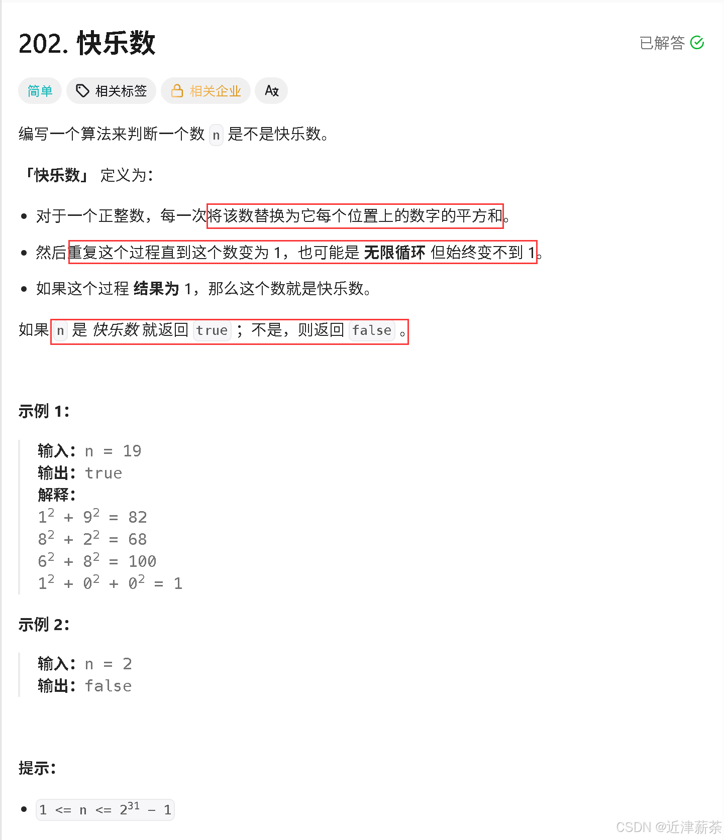 2.判断快慢双指针相遇时,两个数值是否为1。