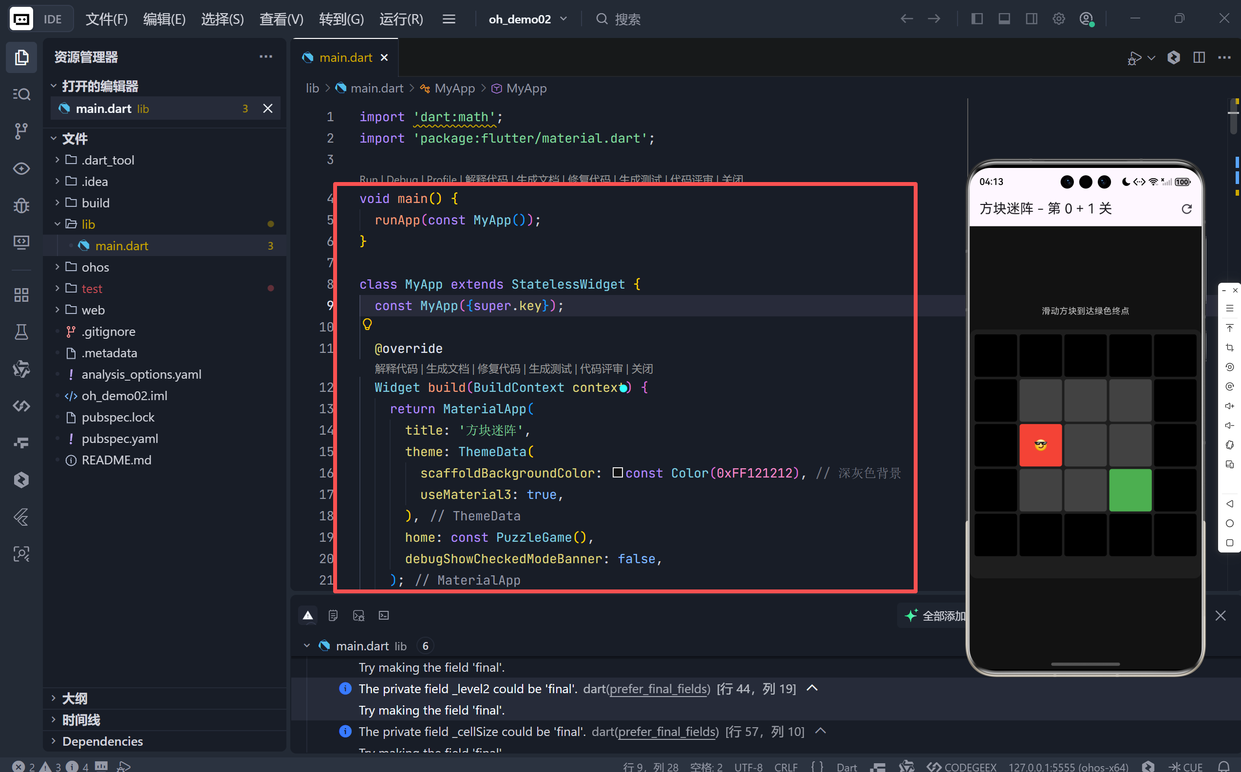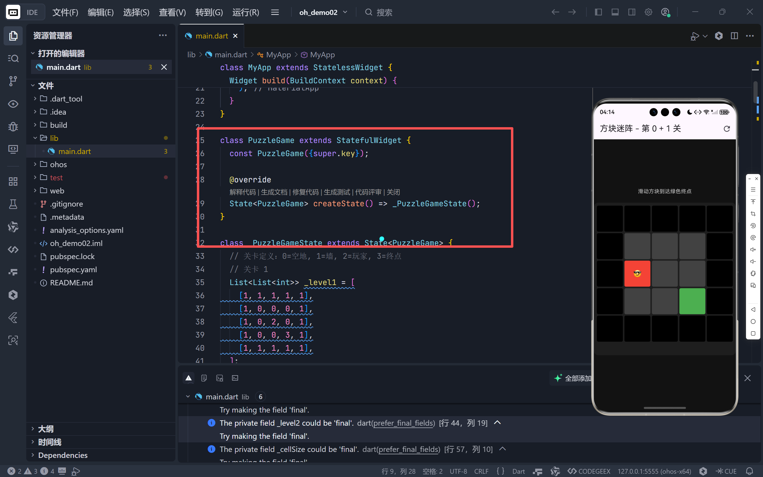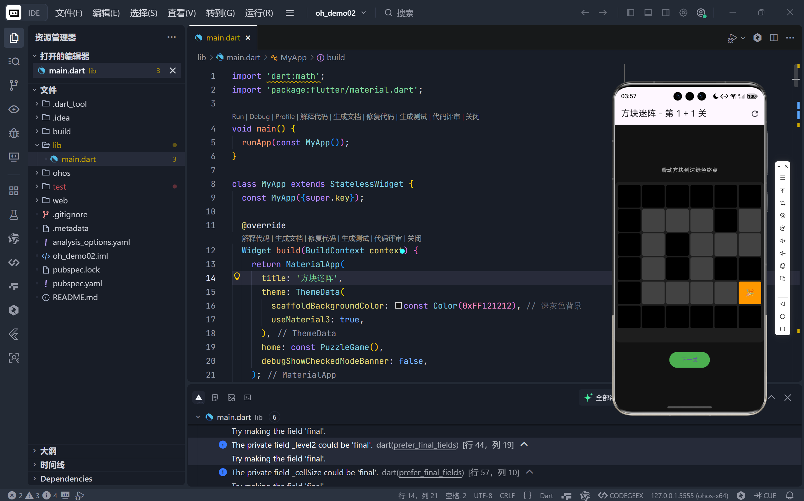 《方块迷阵》以极简的代码,展示了如何用 Flutter 构建一个结构清晰、交互流畅的益智游戏。其核心价值在于: