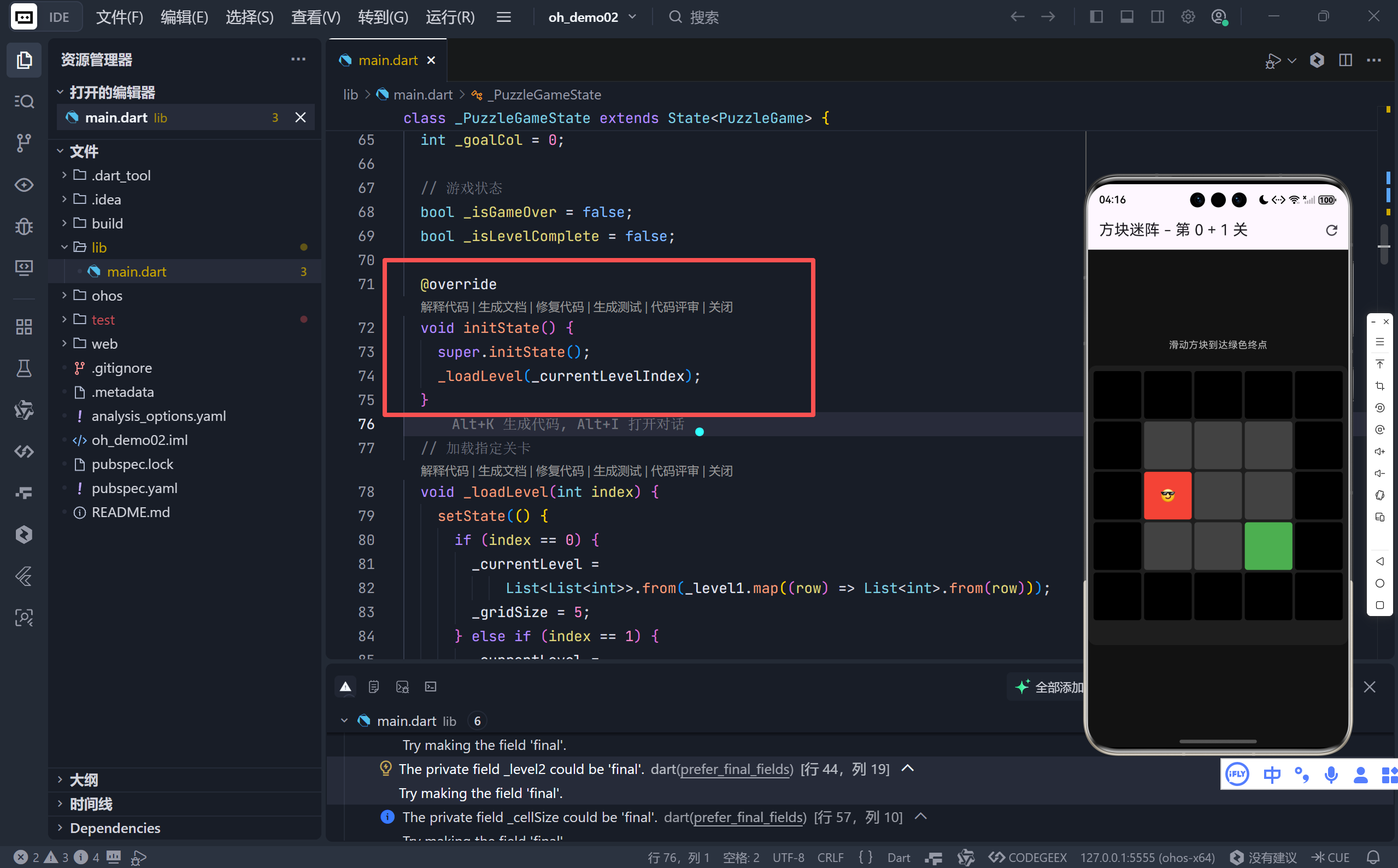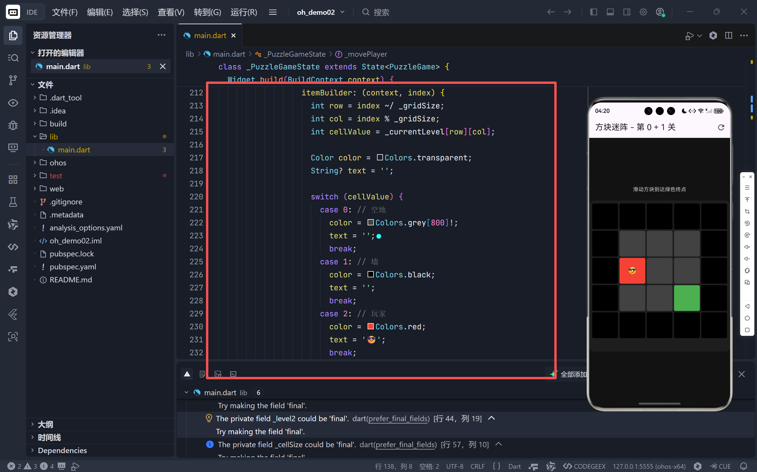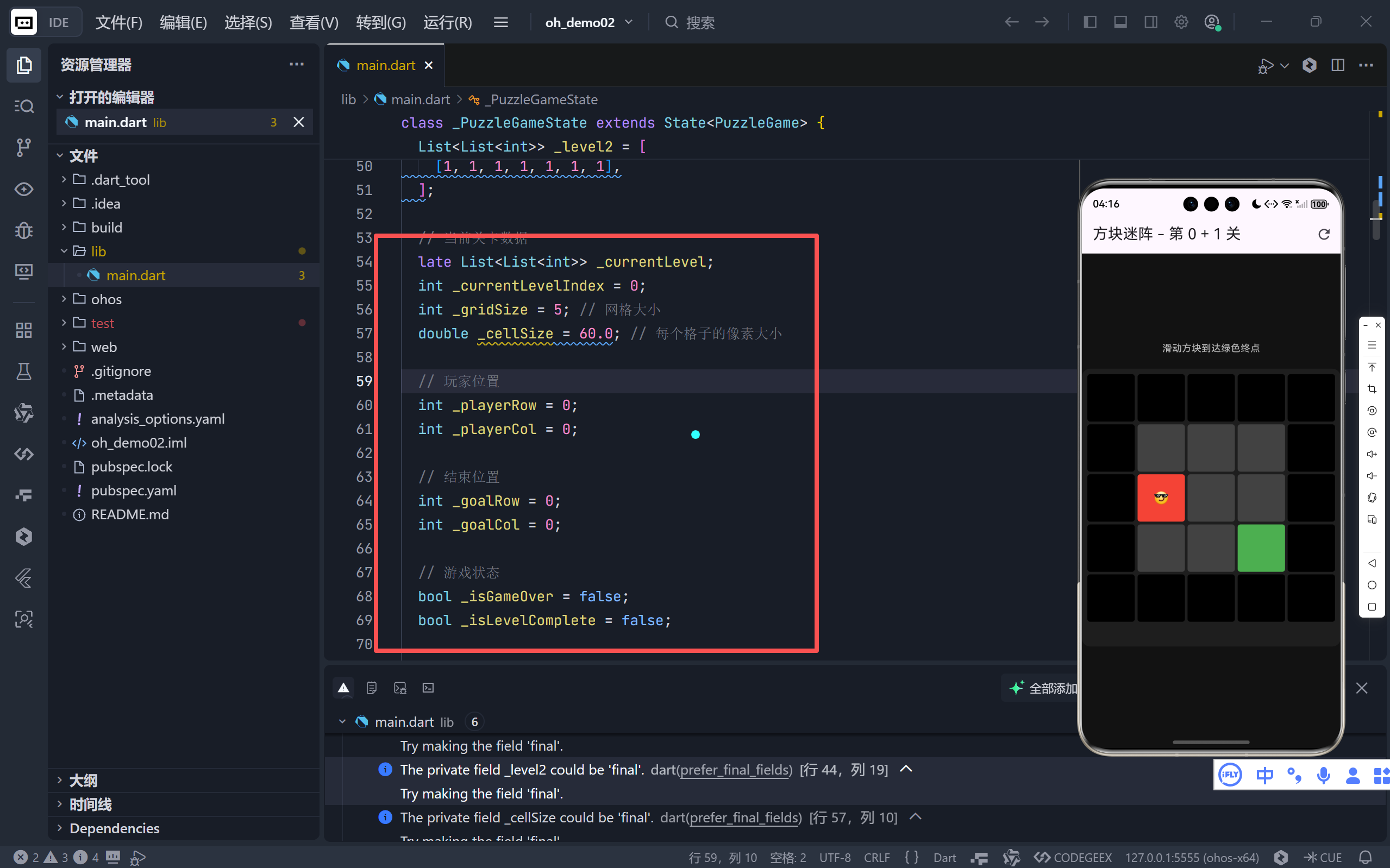 《方块迷阵》以极简的代码,展示了如何用 Flutter 构建一个结构清晰、交互流畅的益智游戏。其核心价值在于: